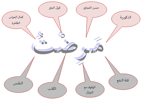 فكلمة مرض كما تدل عليها الصورة هي أربعة أنوار، إن استقامت في العبد كانت منعة له ووجاء من المرض، وإن سقطت منه هذه الأنوار (استبدلت بنقيضاتها من الأكدار) يستحيل ان يكون في سلامة وعافية!!!
